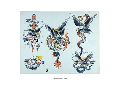 Both Volumes trace the evolution of tattoo art from the early 1900s Bowery in New York to the mid‑century Pike in Long Beach, California, and beyond. Each page immerses you in the vibrant world of vintage tattooing, with crisp photographs of original flash by legends such as Bert Grimm, Bob Shaw, Earl Brown, Paul Rogers, Tahiti Felix, Zeke Owen, Tex Rowe, Ted Inman, Ed Smith, Sailor Barney, Ace Harlyn, Tattoo Lou, Tattoo Peter, Jack Dracula, Wes Grimshaw and many others.